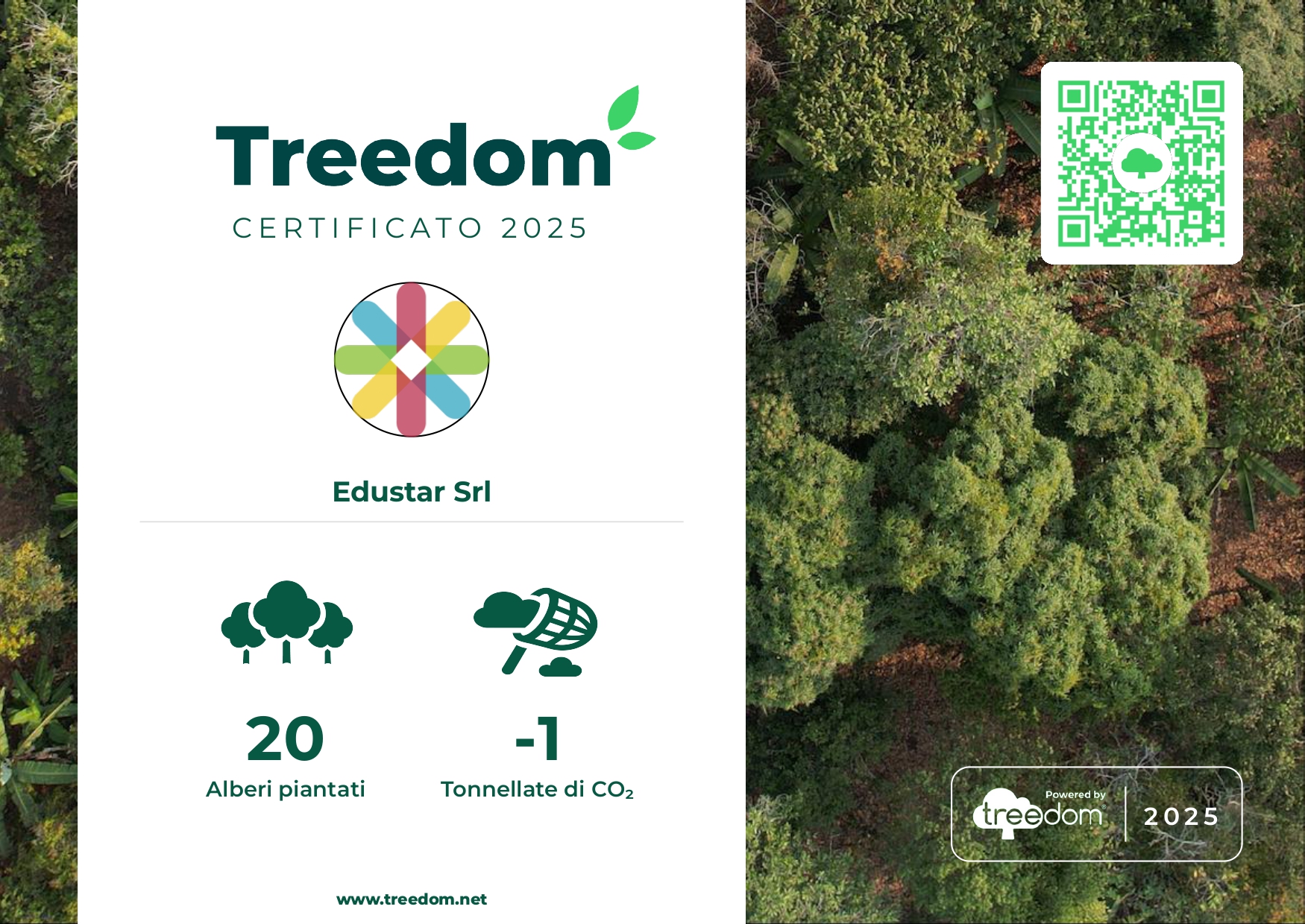 Edustar ha scelto di fare la sua parte per il pianeta aderendo al progetto Treedom e piantando alberi per compensare le emissioni di CO₂ generate dalla propria attività.
